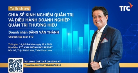 Ngày 18/4/2024 tới đây, talkshow chia sẻ kinh nghiệm quản trị và điều hành doanh nghiệp, quản trị thương hiệu của doanh nhân Đặng Văn Thành dành cho cộng đồng doanh nhân, nhà khởi nghiệp, các đối tác, khách hàng… sẽ được tổ chức. Đây còn là cơ hội để các doanh nhân, doanh nghiệp gặp gỡ, tìm kiếm cơ hội hợp tác, xúc tiến kinh doanh.