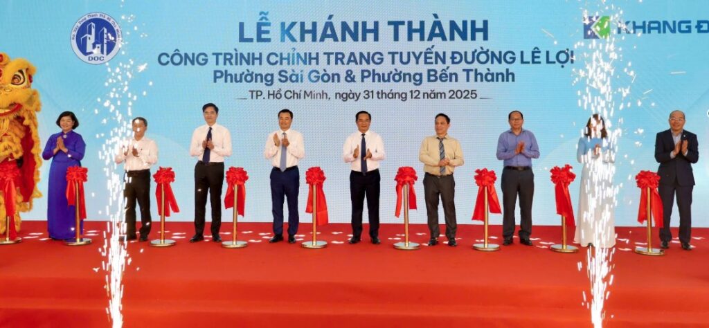 Sáng 31-12, Sở Xây dựng TPHCM phối hợp với Công ty Cổ phần Đầu tư và Kinh doanh nhà Khang Điền tổ chức Lễ khánh thành công trình chỉnh trang tuyến đường Lê Lợi, một trong những trục giao thông, thương mại và du lịch quan trọng bậc nhất khu vực trung tâm thành phố. Đến dự có Chủ tịch UBND TPHCM Nguyễn Văn Được, Phó Chủ tịch UBND TPHCM Bùi Xuân Cường.