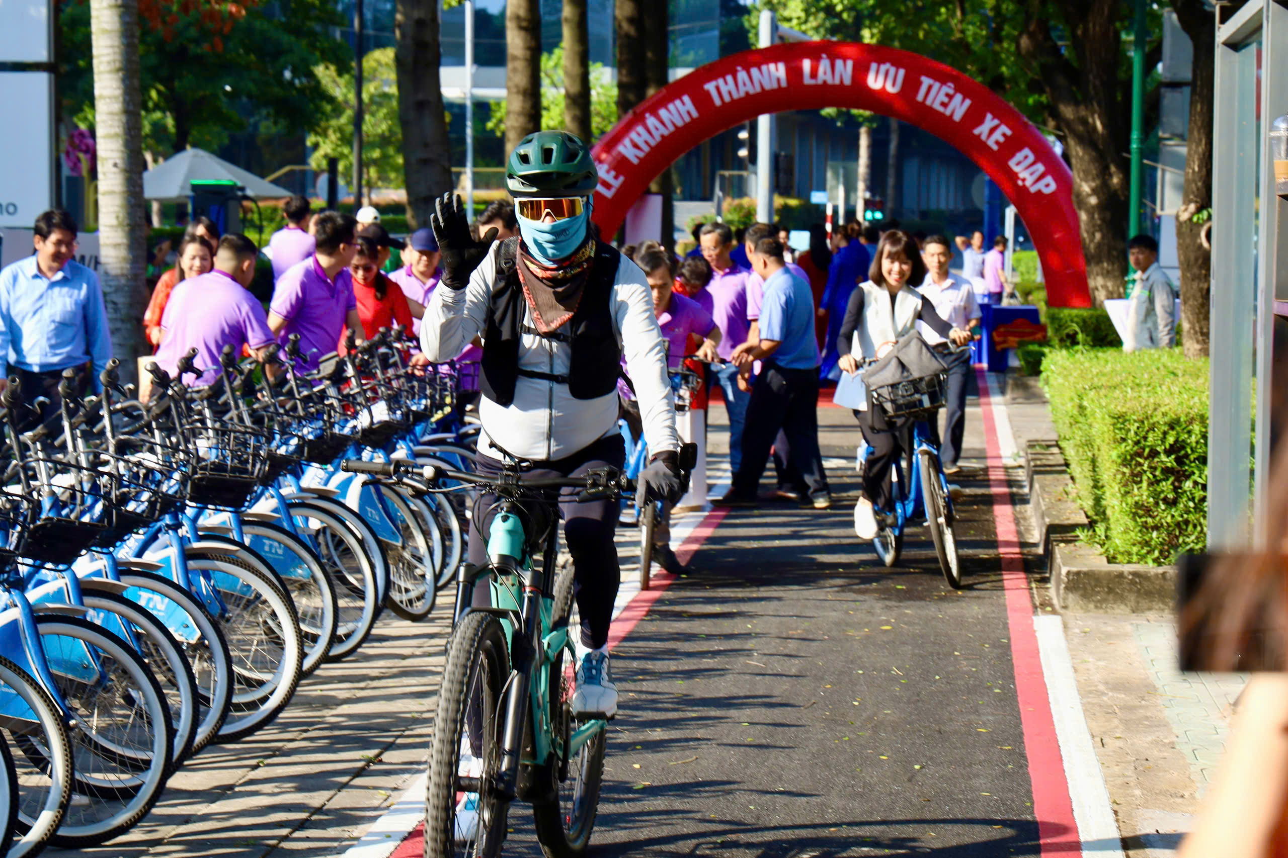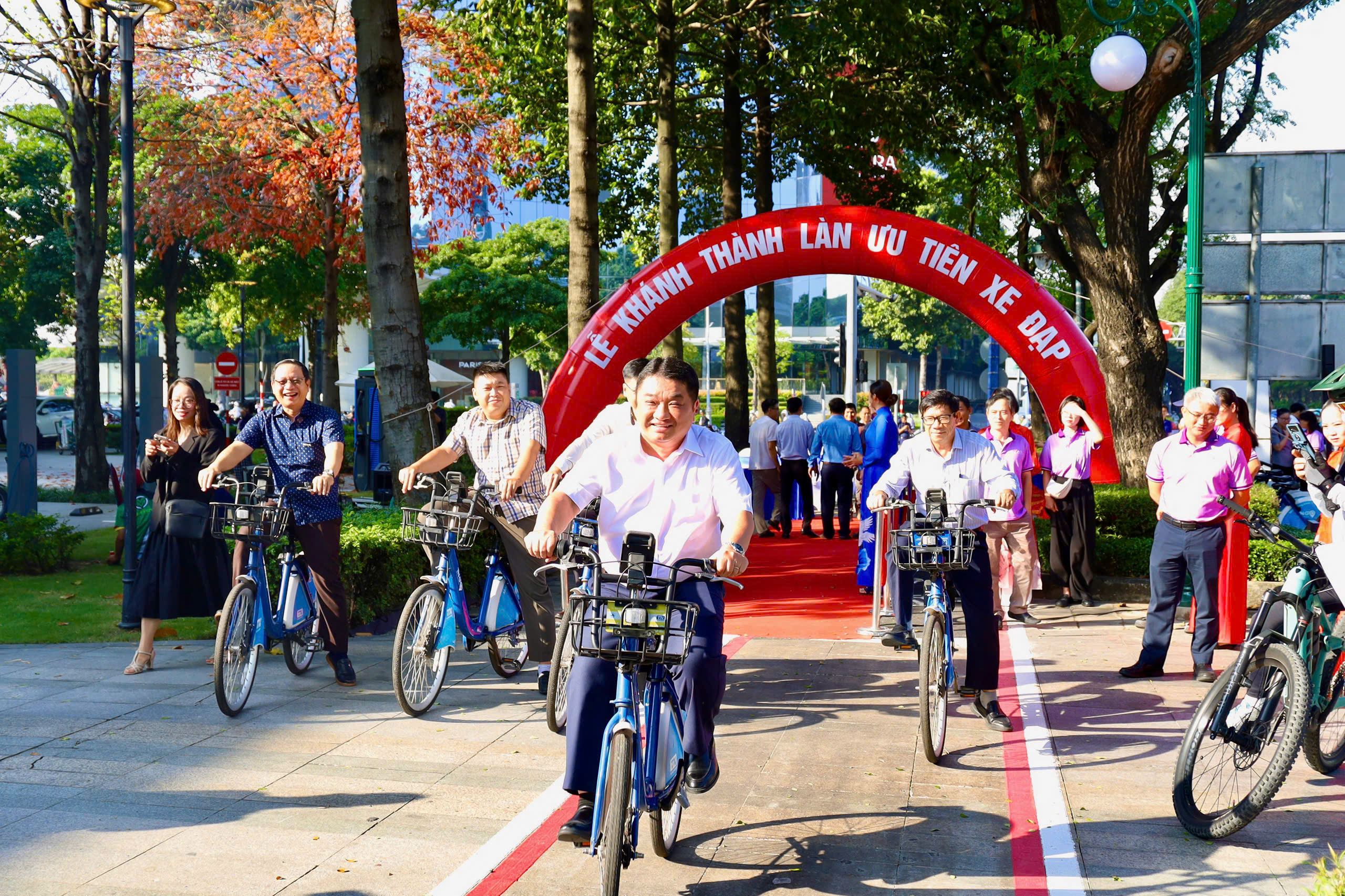 Các đại biểu trải nghiệm làn xe đạp đầu tiên tại TPHCM