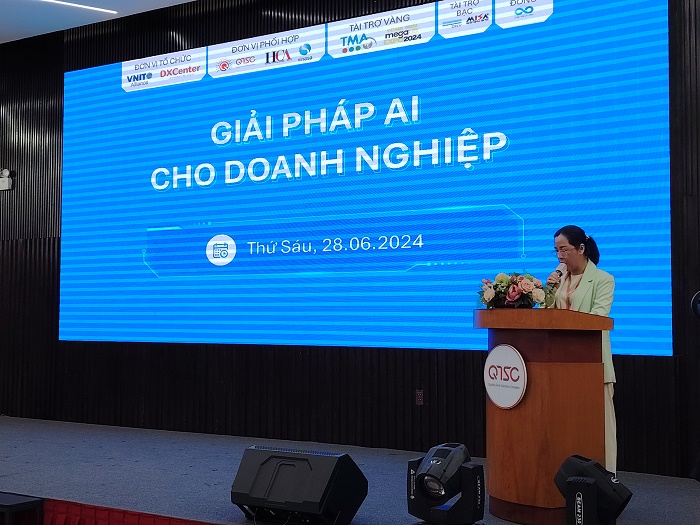 Sáng 28/6/2024 tại Khu Công viên phần mềm Quang Trung, Quận 12, TP. HCM. Trung tâm Hỗ trợ và Tư vấn Chuyển đổi số TP.HCM (DXCenter) phối hợp với Liên minh Doanh nghiệp Công nghệ số Việt Nam (VNITO) và các đối tác QTSC, HCA, VINASA tổ chức hội thảo “Giải pháp AI cho doanh nghiệp”